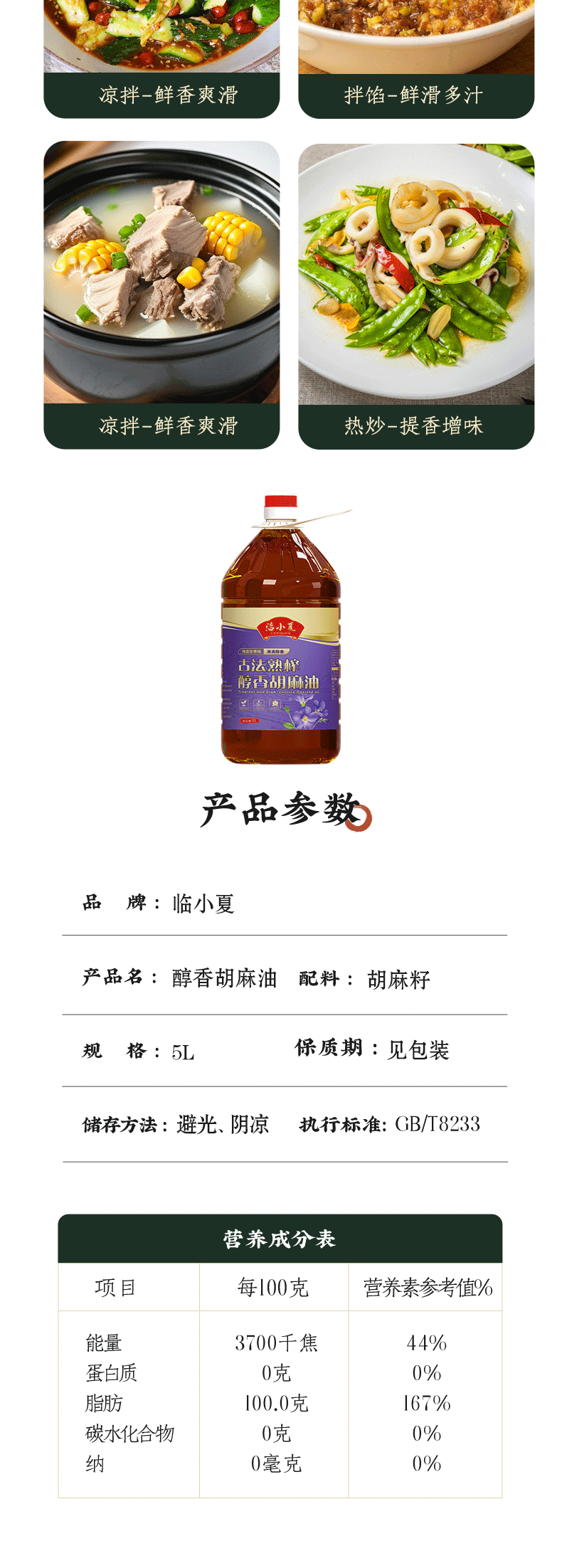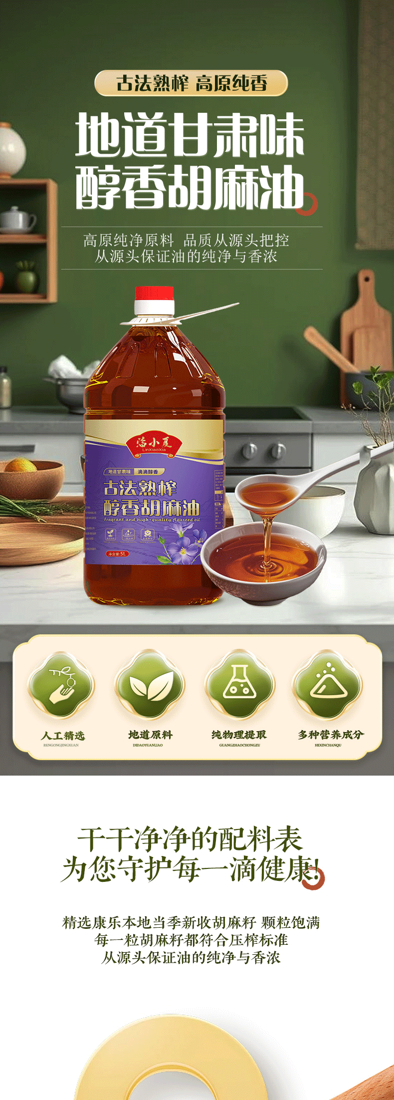 康乐县精品高原土榨胡麻油5L