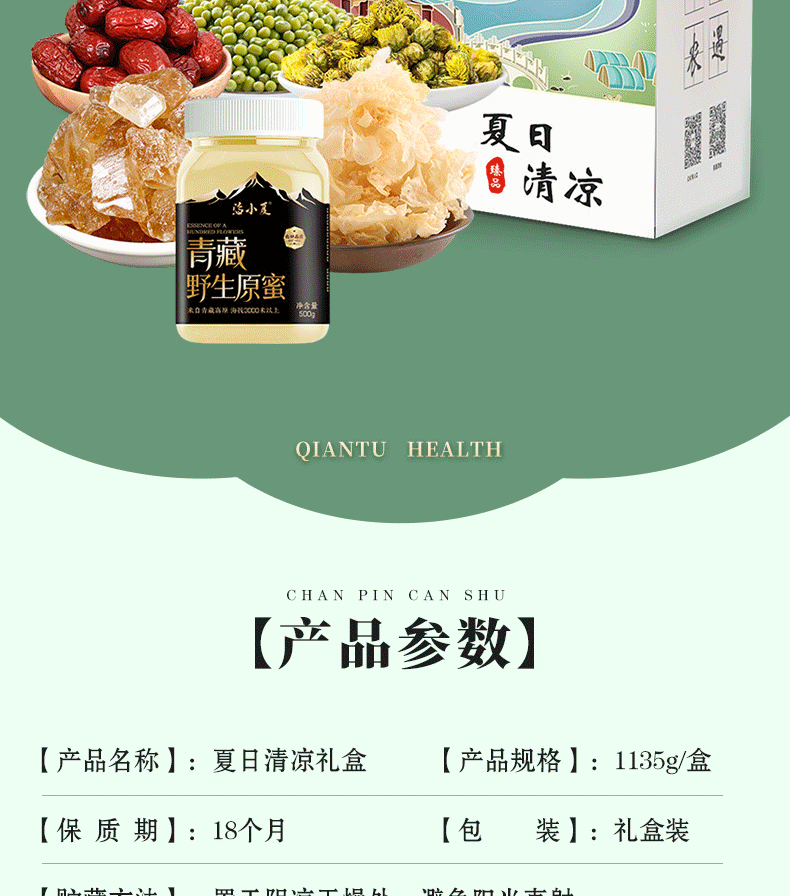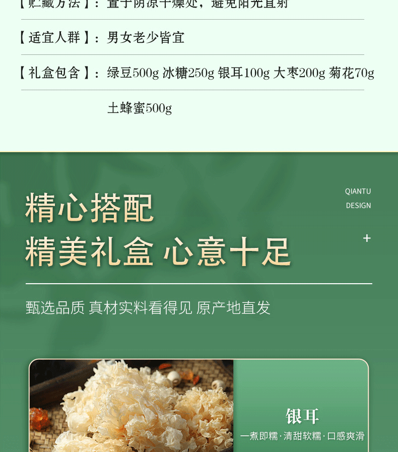 夏日清凉套餐(绿豆500g/冰糖250g/银耳100g/ 大枣200g/菊花50g/土蜂蜜500g)