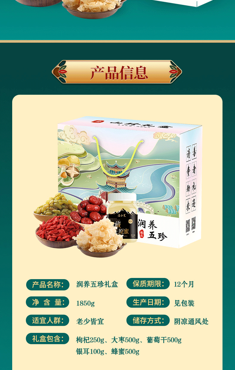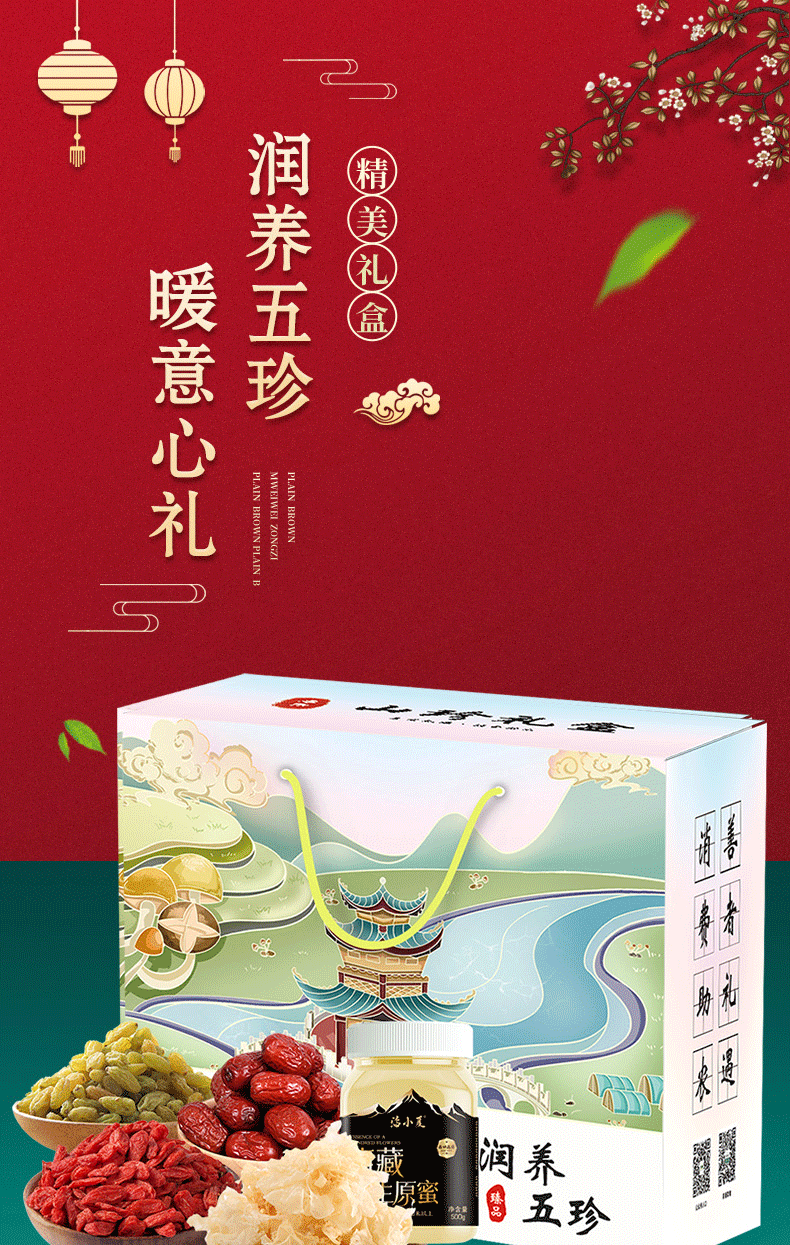 滋养五珍礼盒(红枸杞250g+大枣500g+葡萄干500g+银耳100g+蜂蜜500g)
