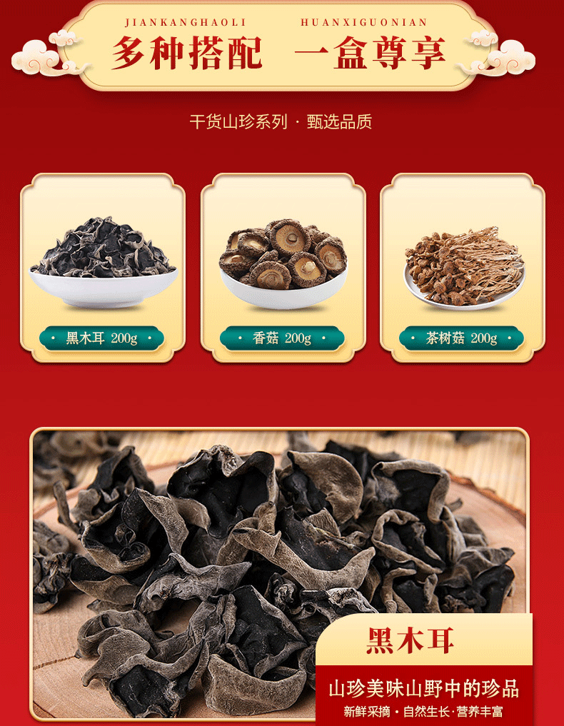 干货礼盒600g(黑木耳200g/香菇200g/ 茶树菇200g3种)