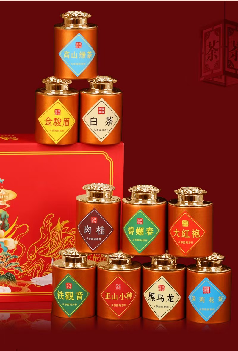 十大茗茶铁观音乌龙茶叶金骏眉正山小种红茶小罐装高档茶叶礼盒装