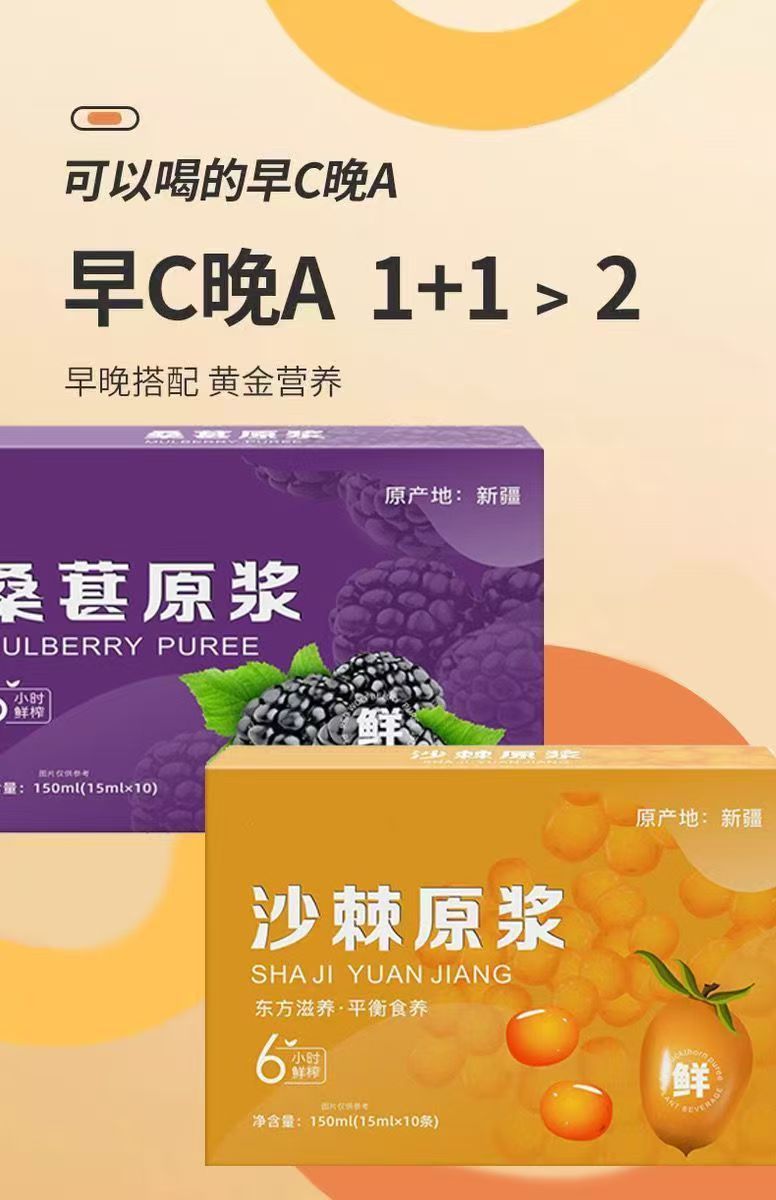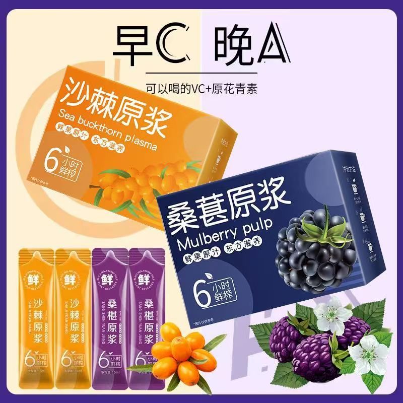 康乐县早C晚A桑葚沙棘原浆鲜榨0添加便携饮料(包税包邮)