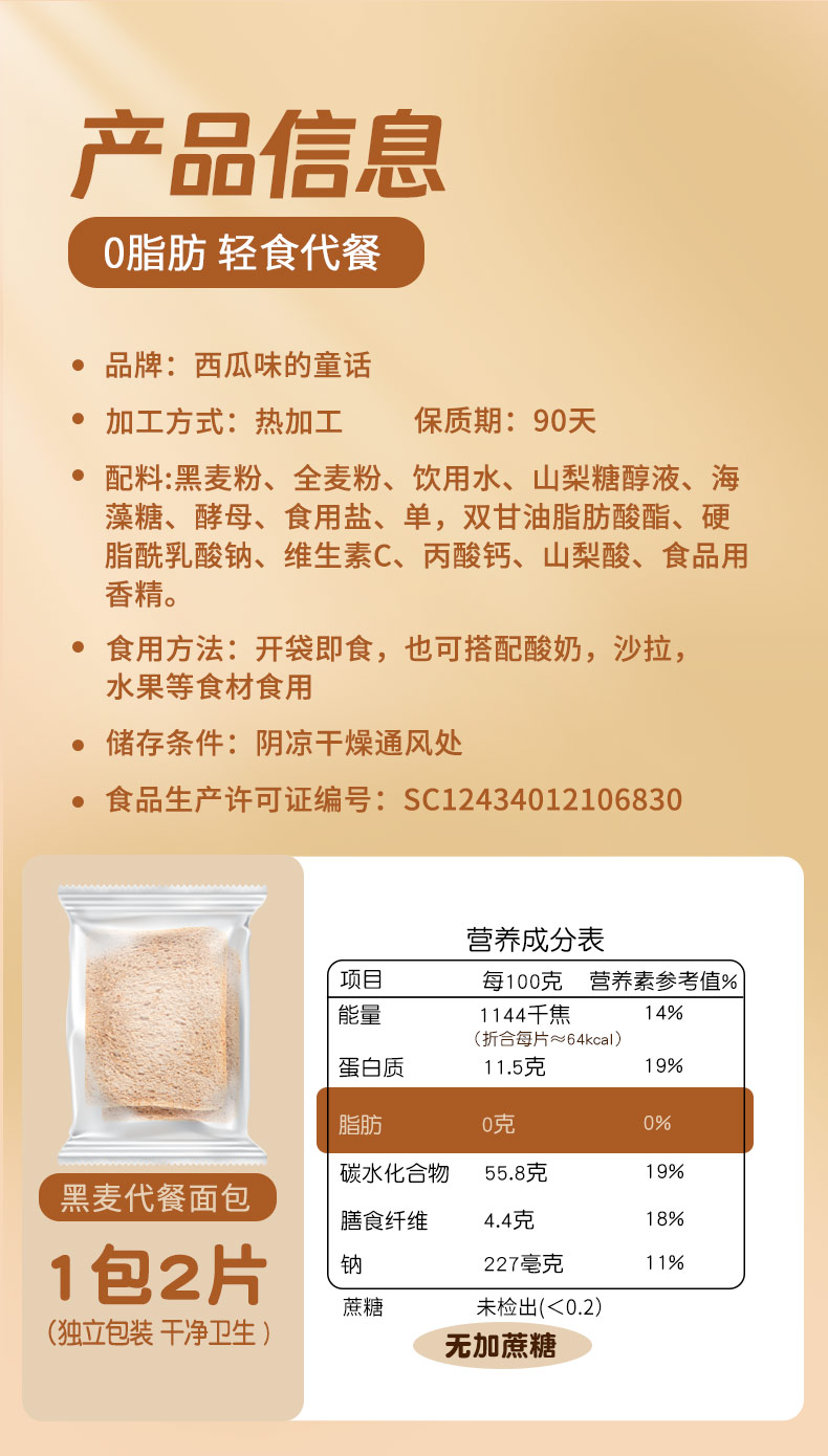 西瓜味的童话黑麦代餐面包500克坚持真全麦,0添加小麦粉