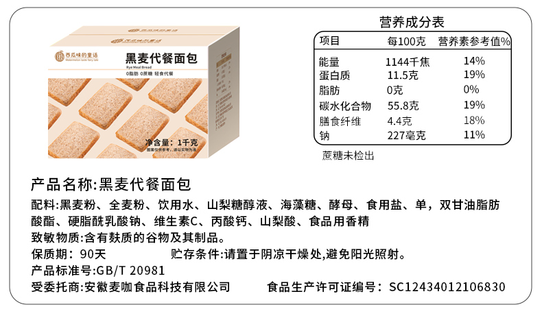 西瓜味童话0脂肪,0添加蔗糖,含膳食纤维营养代餐面包