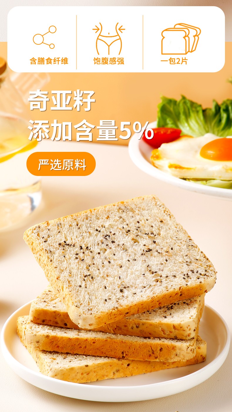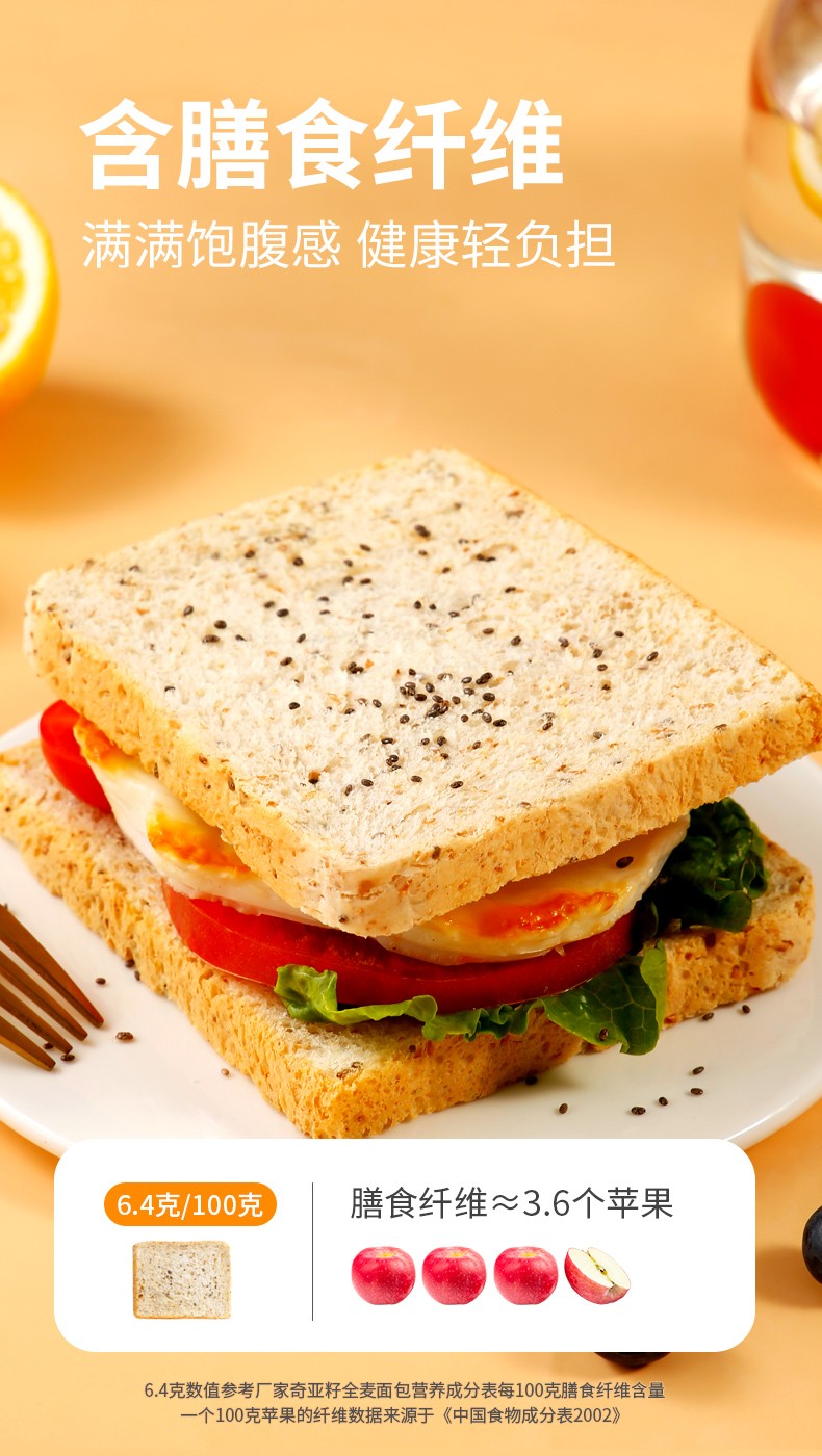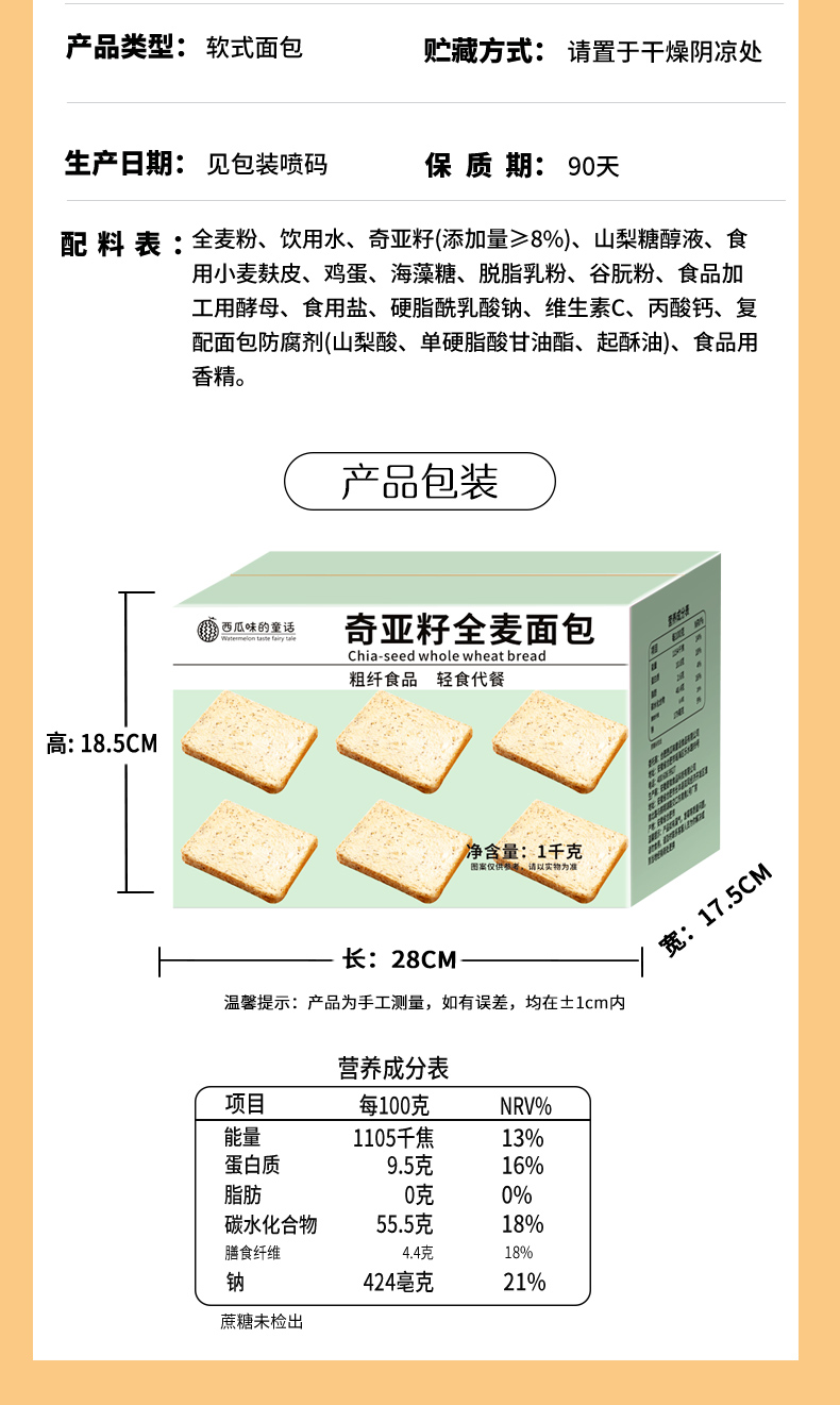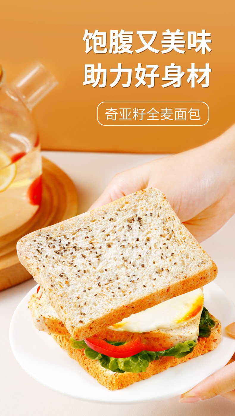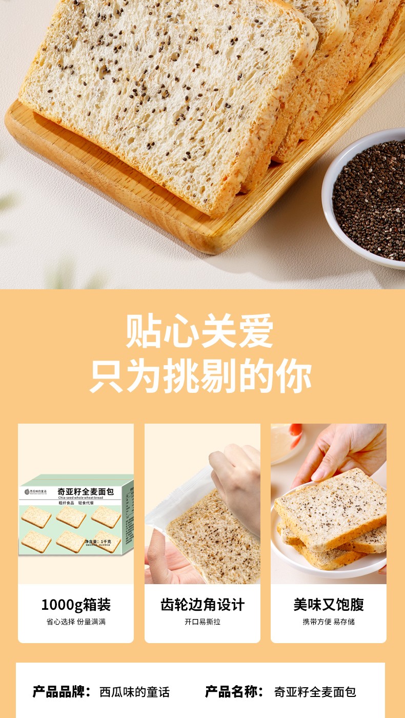 西瓜味的童话奇亚籽全麦面包1kg/箱奇亚籽添加量5%营养代餐