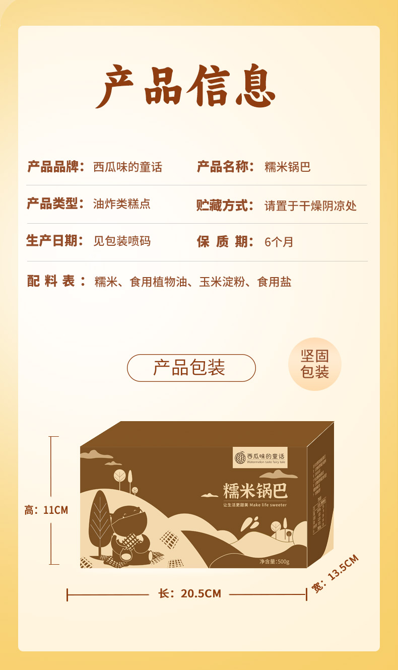 西瓜味的童话糯米锅巴500g*1箱少油配方,不油不腻