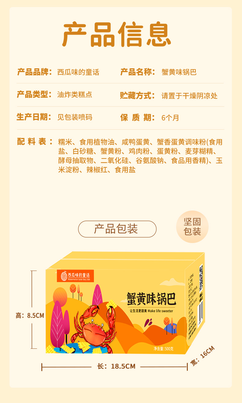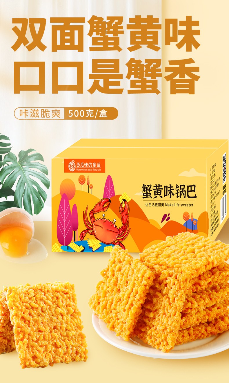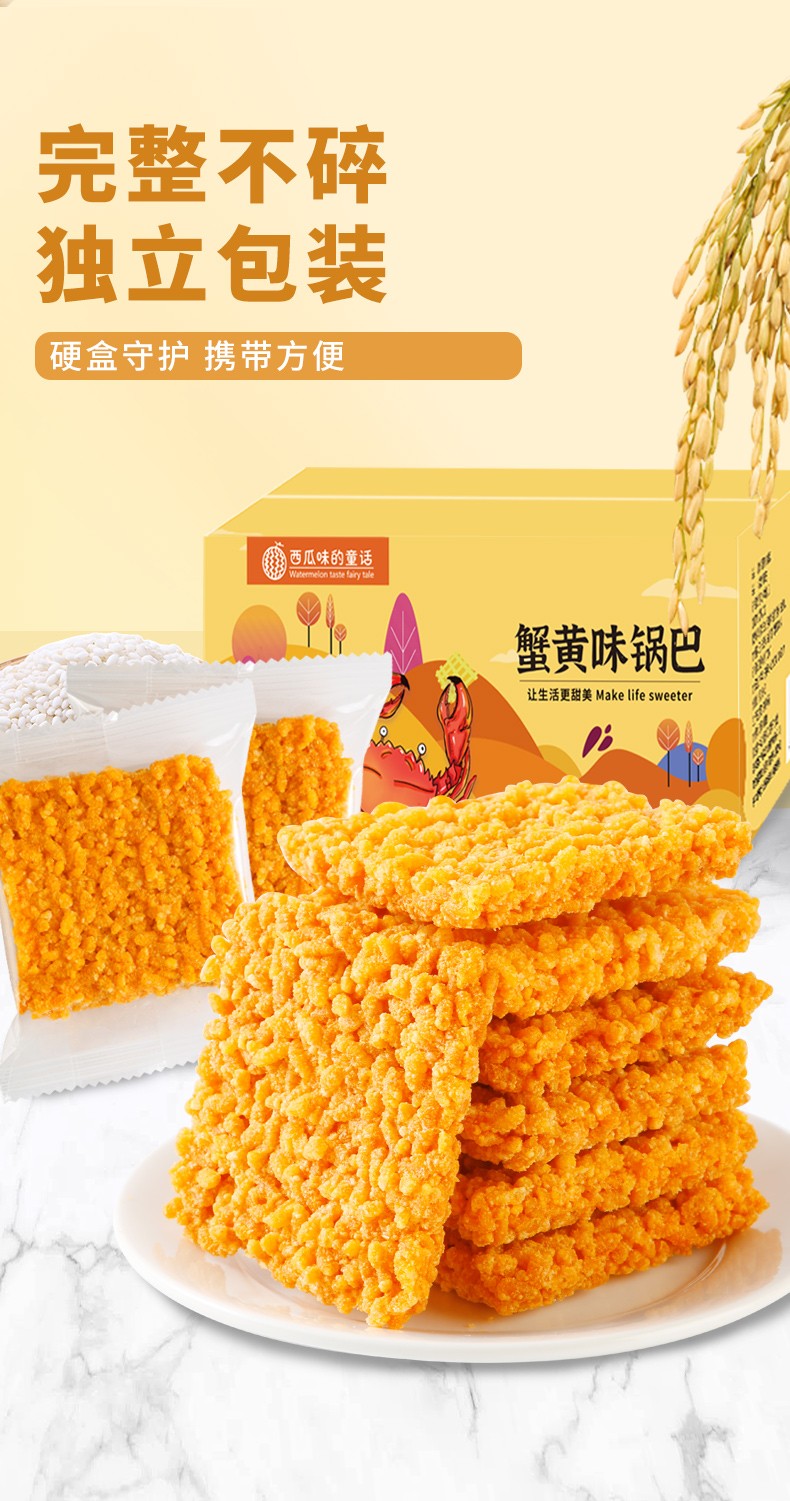 西瓜味的童话休闲零食蟹黄锅巴双面蟹黄味,口口是蟹香