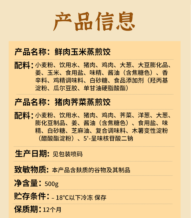 (绿小象)鲜肉玉米蒸煎饺500g/袋*3