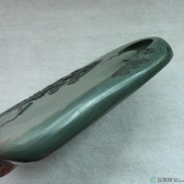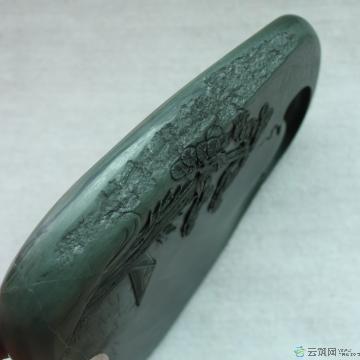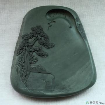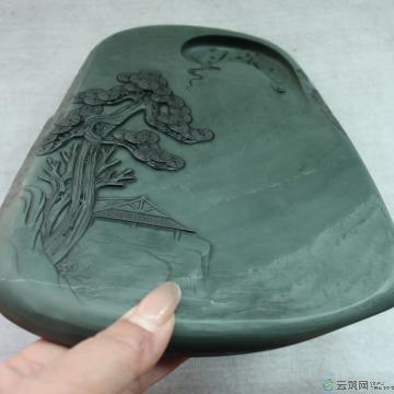 此件洮砚“迎客松”选用水泉湾料,质地温润细腻,色泽典雅。工匠以精湛技艺将松枝虬曲、针叶如翠之态雕琢得栩栩如生,恰似好客之姿迎接八方来客。松针根根分明,树干纹理逼真,整体造型大气磅礴,充分展现洮砚雕刻的高超水准,寓意吉祥,艺术价值颇高。
