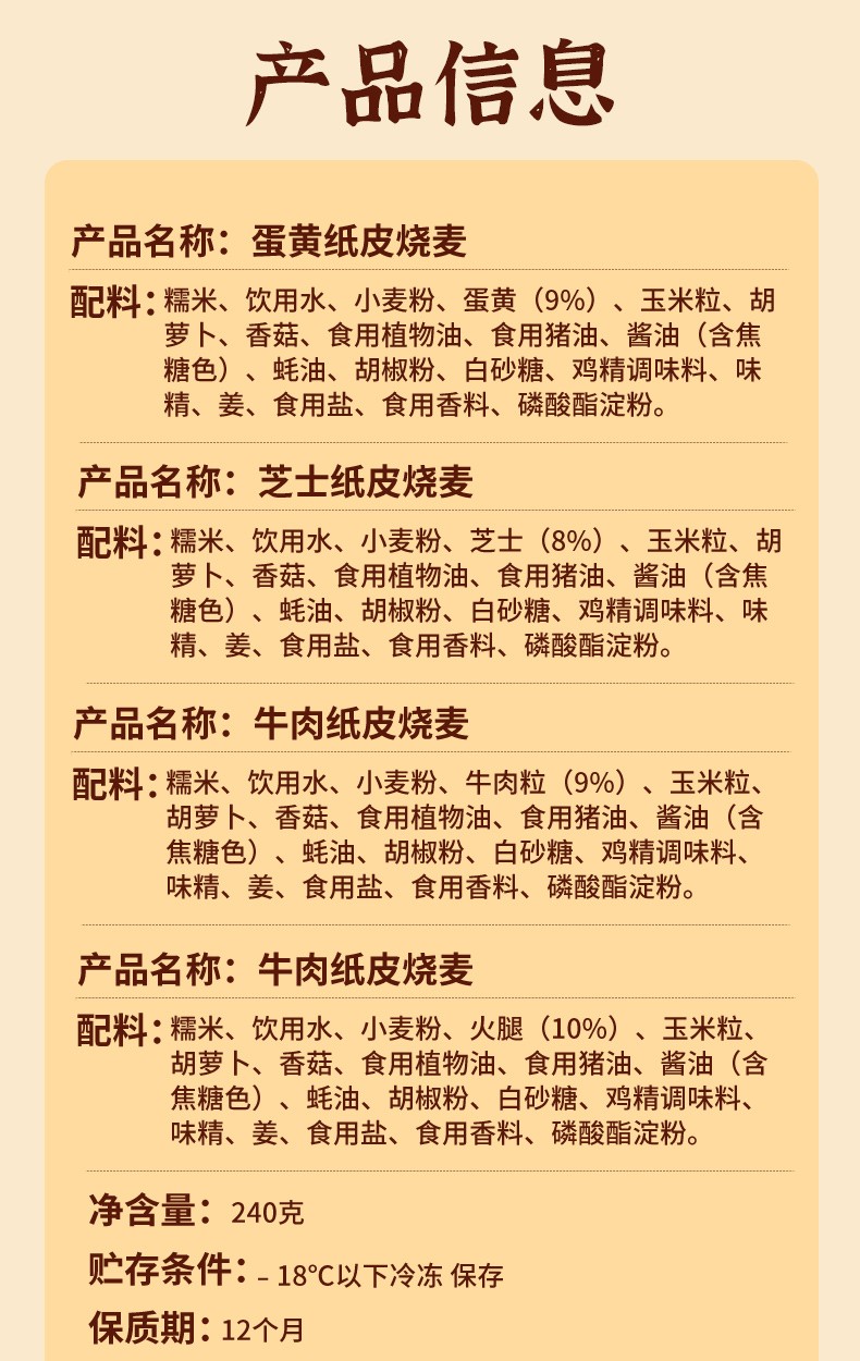 (绿小象)蛋黄纸皮烧麦240g/袋*2
